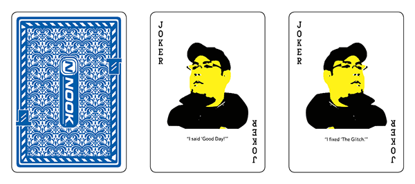I created this 54-card deck of playing cards as a gift to employees for the Nook Industries holiday party in 2012.
