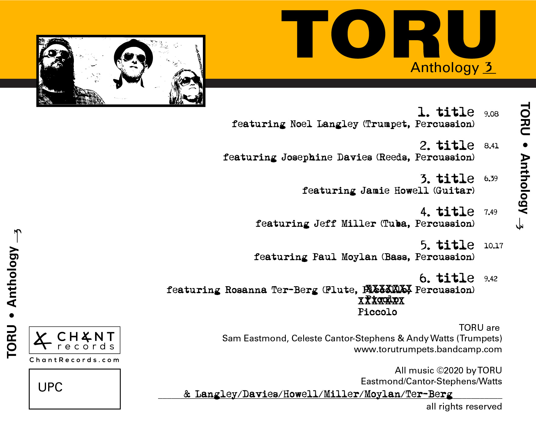 A series of album covers for TORU, a free-improv group based in the UK. Two CD packages were created and 24 digital EP's. A third CD package was designed, but the full project was never finalized.
