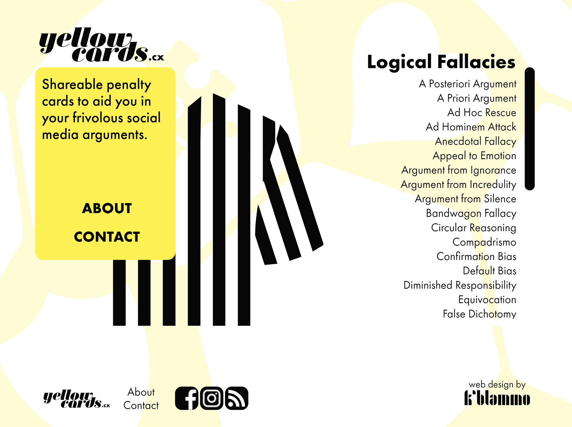 A website with cover tiles indicating logical fallacies for use with facilitating arguments on social media.